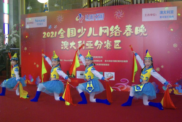 2021年是中国共产党成立100周年,为隆重纪念这一具有历史性的节日,由全国少儿春节联欢晚会组委会联合多家单位打造 “少年中国·红童贺岁”2021全国少儿(网络)春节联欢晚会,澳大利亚黄河演艺机构获授权负责澳大利亚分赛区节目的录播,澳大利亚纽瑞优参与协办,并于2021年1月28日在悉尼顺利录播完毕。