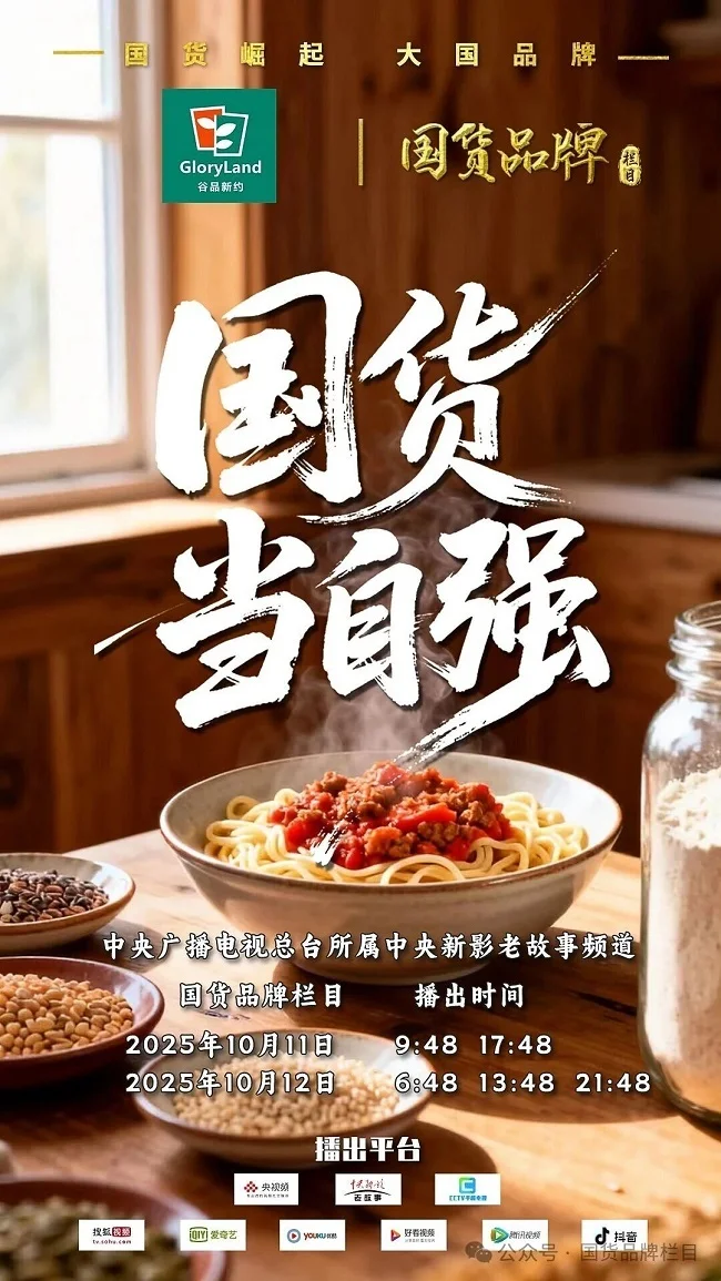 近日,谷品新约无麸质食品品牌,正式登陆中央广播电视总台所属中央新影老故事频道《国货品牌》栏目。作为聚焦有价值观、有文化、有温度、有行业担当的国家级媒体平台,《国货品牌》以细腻的镜头语言,深度挖掘谷品新约从危机中寻找机遇、于挫折中铸就辉煌的奋斗历程,不仅展现了谷品新约品牌的成长轨迹,更以国货复兴之名,揭开了中国制造崛起背后的坚守与智慧。